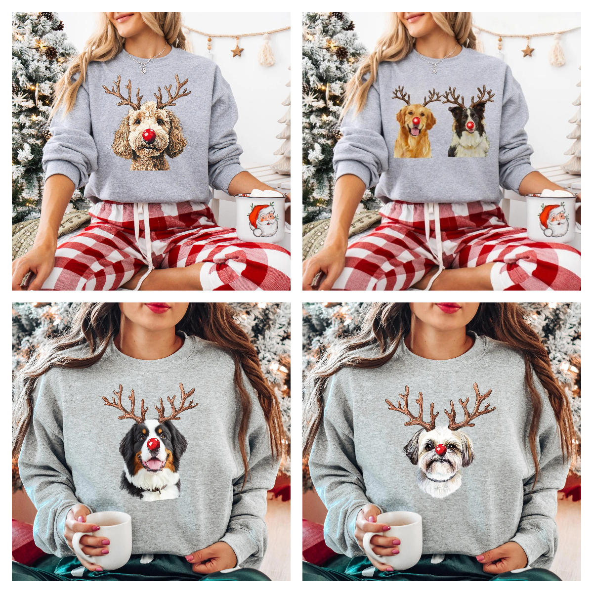 Custom Christmas Dog Photo Sweatshirt, Funny Dog Reindeer Sweatshirt