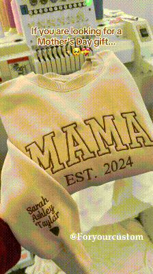 Custom Embroidered MAMA Sweatshirt with Kids Names on Sleeve – Mother’s Day Gift
