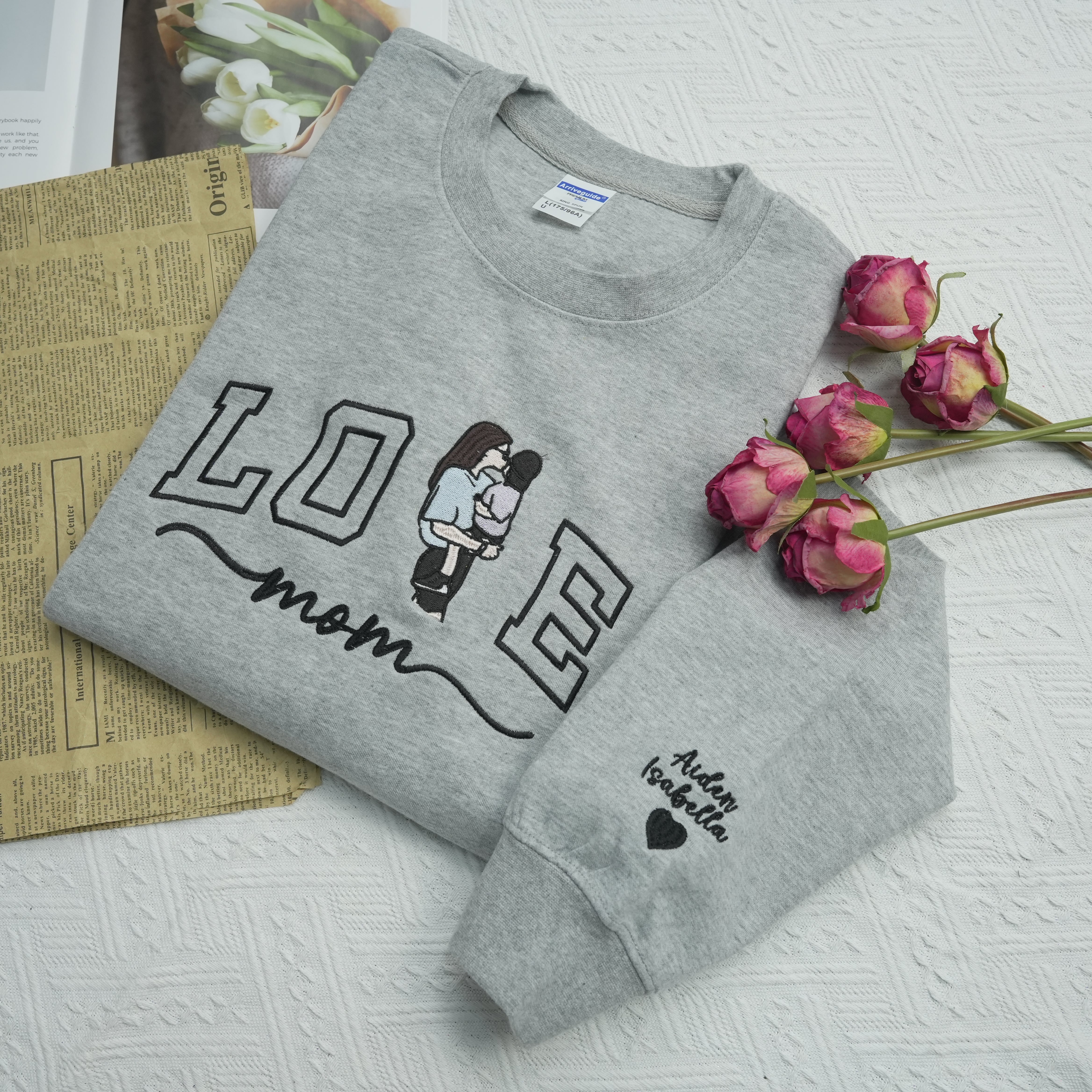 Custom Embroidered Photo Portrait For Mom Love Sweatshirt