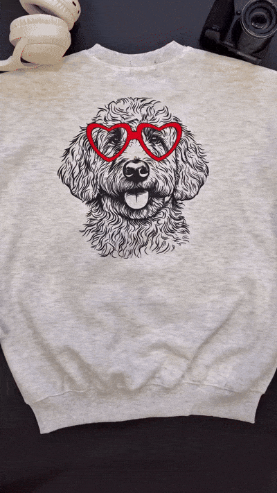Custom Pet Valentine’s Day Sweatshirt - Personalized Dog/Cat Heart Glasses Graphic Crewneck