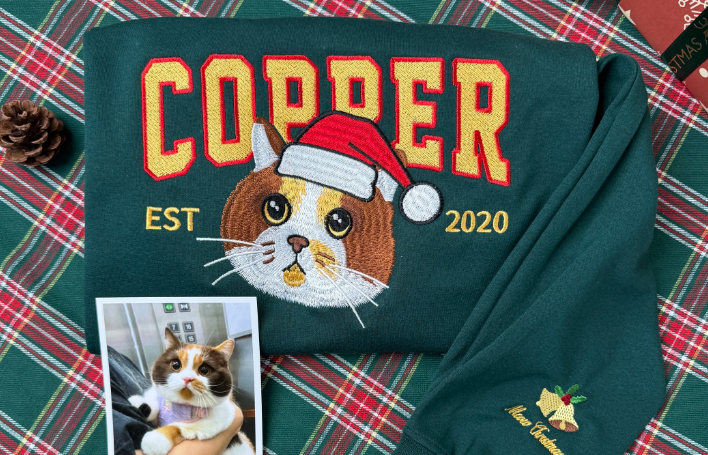 Customized Pet Face Pattern Christmas Reindeer Embroidered Sweatshirt/Hoodie