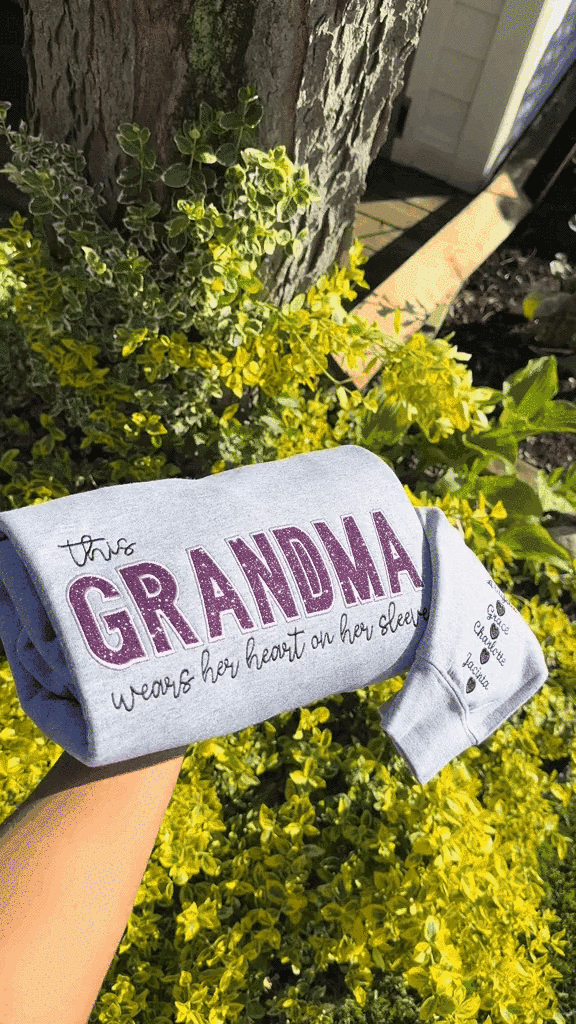 Mom Wears Her Heart on Her Sleeves Custom Embroidered T-Shirt ,Sequined Sweatshirt Gift for Mom & Nana