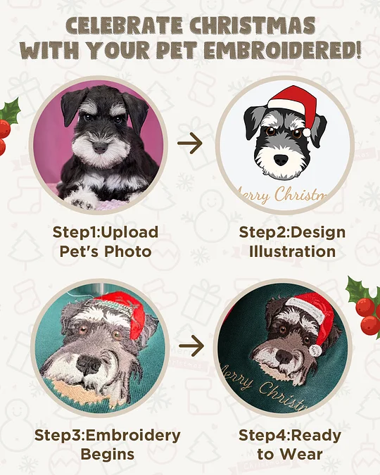 Pet Embroidered Sweatshirt Christmas Dog Embroidered Sweatshirt Hoodie T-shirt Xmas Gift